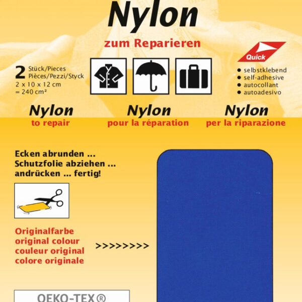 Nylon-reparatielappen, zelfklevend, korenblauw.