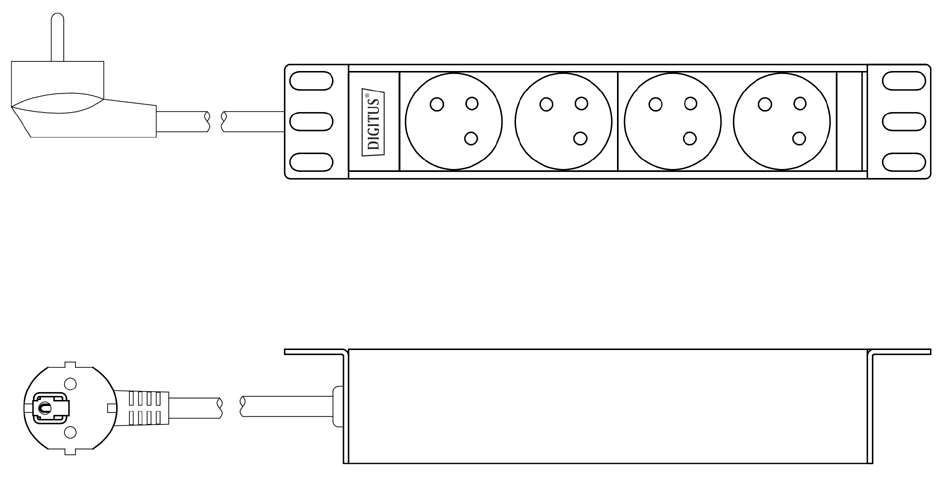 Siemens 1U PDU met 4 stopcontacten en 2 meter netsnoer. Elk stopcontact heeft een CEE 7/5 aansluiting en maximale stroom van 16A. Ingang: CEE 7/7 stekker. Afmetingen: 254x45x45mm. Voor de Franse markt. DN-95418-FR.