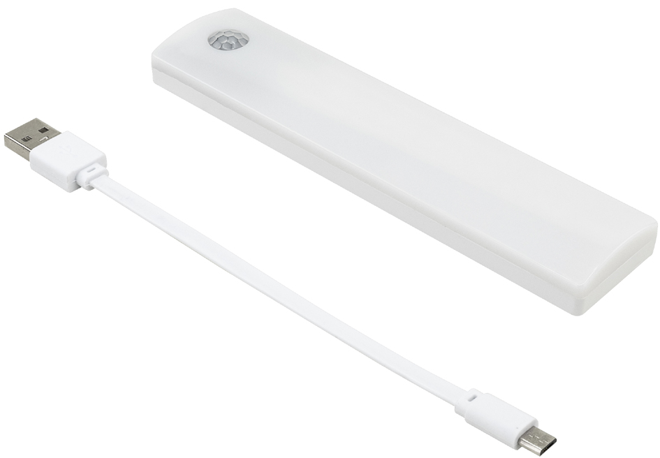 Oplaadbare LED onderbouwverlichting met bewegingssensor, dimbaar met 3 kleurtemperaturen. Inclusief USB-kabel, 3,5 uur verlichtingsduur. Productomschrijving in het engels, Productdescription in English Rechargeable LED under-cabinet light with motion sensor, dimmable with 3 color temperatures.