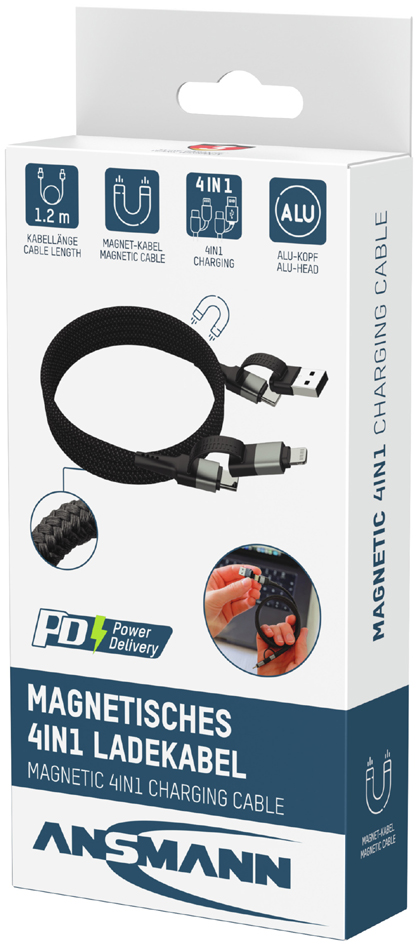 ANSMANN Magnetische 4-in-1 Data- en Oplaadkabel, 1,2 m, zwart