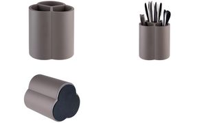 Elegante bestekbak met 3 vakken van beton. Afmeting: 13×13×14,5 cm. Voorzien van siliconen bodemlaag om meubilair en mespunten te beschermen. Niet vaatwasserbestendig.