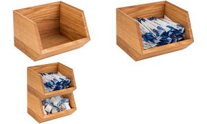 Stijlvolle buffetbox MODULO van geolied eikenhout, stapelbaar met binnenafmetingen 155 x 100 mm. Natuurlijke uitstraling en praktisch voor presentatie van gerechten of ingrediënten.