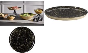 Rustic mango wood plate (Ø 355 mm) featuring stunning starry sky epoxy resin design. Hand wash only.