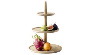 Elegant VALO 3-tier serving stand made from oiled oak wood. Perfect for displaying appetizers. 300 mm diameter, 420 mm high.