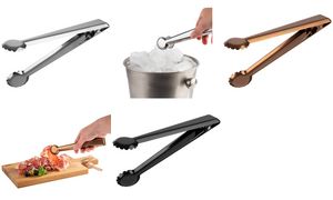 Elegant stainless steel ice tongs with polished finish, copper accents and securing clip. Length: 200mm. Hand wash only.