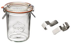 Set of 8 stainless steel clamps for Weck jars. Fits all sizes. Essential for airtight preserving and canning.