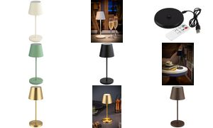 Elegant rustic LED table lamp with dimming function. Rechargeable with 10-hour runtime. Remote control included.