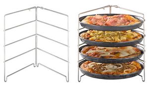 Stainless steel rack for 4 pizza trays up to 280 mm. Foldable, dishwasher-safe with 55 mm spacing between levels.