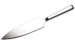 Klassiek taartmes van hoogglans gepolijst RVS met getande rand. Afmetingen: 290 x 50 x 10 mm. Perfect voor het precies snijden van taarten.