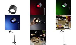 Wireless LED table light with charging dock. Dimmable, 6-hour runtime, waterproof (IP54). Includes remote control.