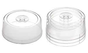 Transparant vershouddeksel (Ø 300 mm) van polystyrol. Stapelbaar, stabiele uitvoering en 115 mm hoog. Ideaal voor professioneel gebruik.