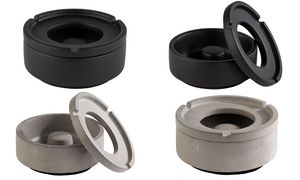 ELEMENT ashtray: elegant concrete design in black. 105 mm diameter, 50 mm height. Furniture-friendly base. Perfect for indoor/outdoor use.