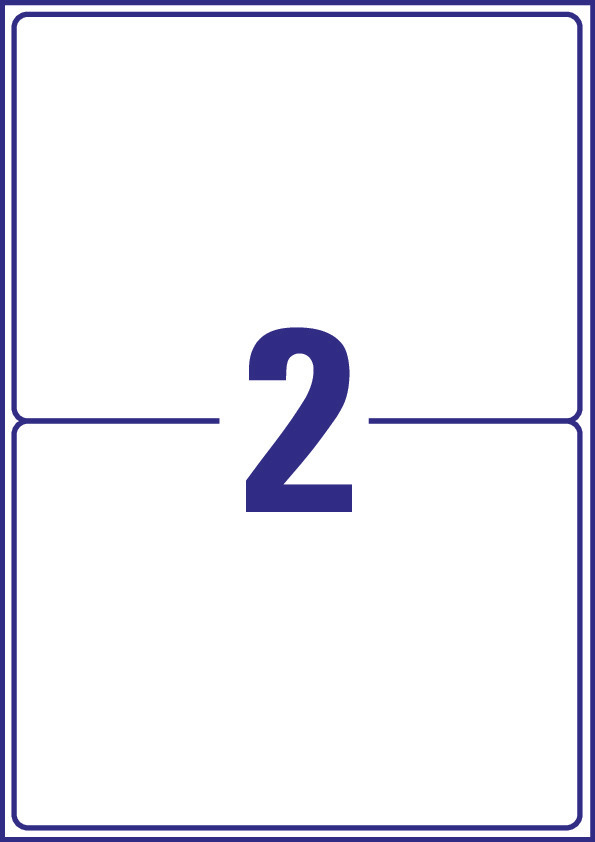 DIN A5 formaat verzendlabels voor pakketmarken, met rand en ronde hoeken. Geschikt voor inkjet-, laser- en kleurlaserprinters. 600 etiketten op 300 A4-vellen. Productomschrijving in het engels, Productdescription in English White shipping labels with rounded corners, compatible with inkjet and laser printers, 600 labels included.