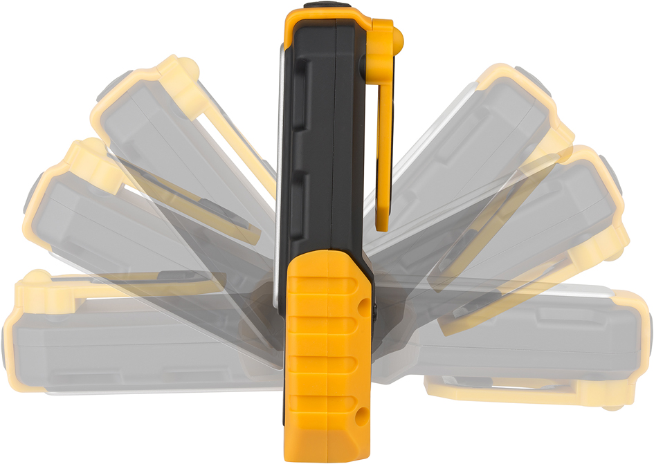 4 heldere SMD-LED’s, 3 uur gebruiksduur, riemclip, draaibare haak, Li-Ion accu, magnetische houdervoet, USB-laadkabel inbegrepen. Productomschrijving in het engels, Productdescription in English LED rechargeable work light with 4 SMD-LEDs, magnetic base, belt clip and USB charging cable.