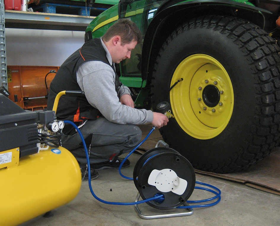 18,5m geweven persluchtslang + 1,5m verbindingsslang, 6/12mm diameter, 15 bar werkdruk, metalen snelkoppelingen, robuuste kunststof haspel. Productomschrijving in het engels, Productdescription in English Air hose reel with 20m high-quality braided hose, 15 bar operating pressure, metal quick couplings.
