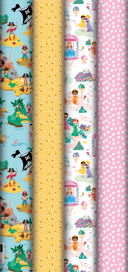 Stijlvol cadeaupapier van 80 g/m² op handige rol. Formaat 70 cm x 2 meter, leverbaar in vier verschillende sprookjesachtige designs.