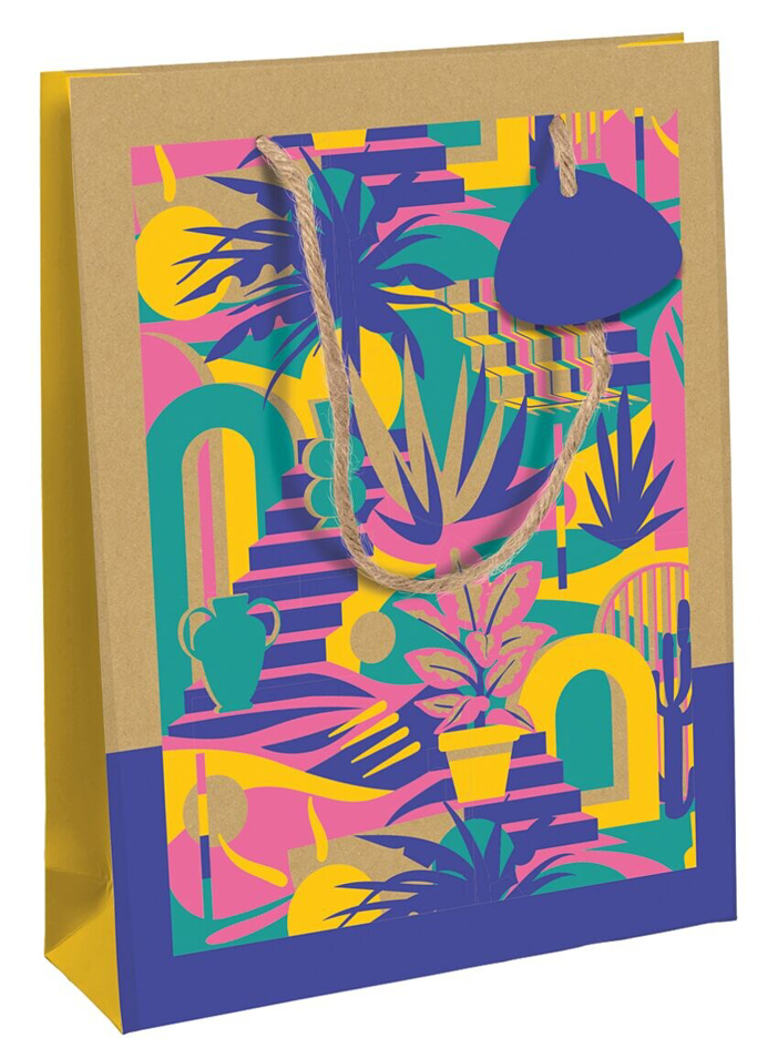 Elegant brown gift bag made of sturdy kraft paper (210 g/m²) with carrying cord. Size: 265 x 140 x 330 mm.