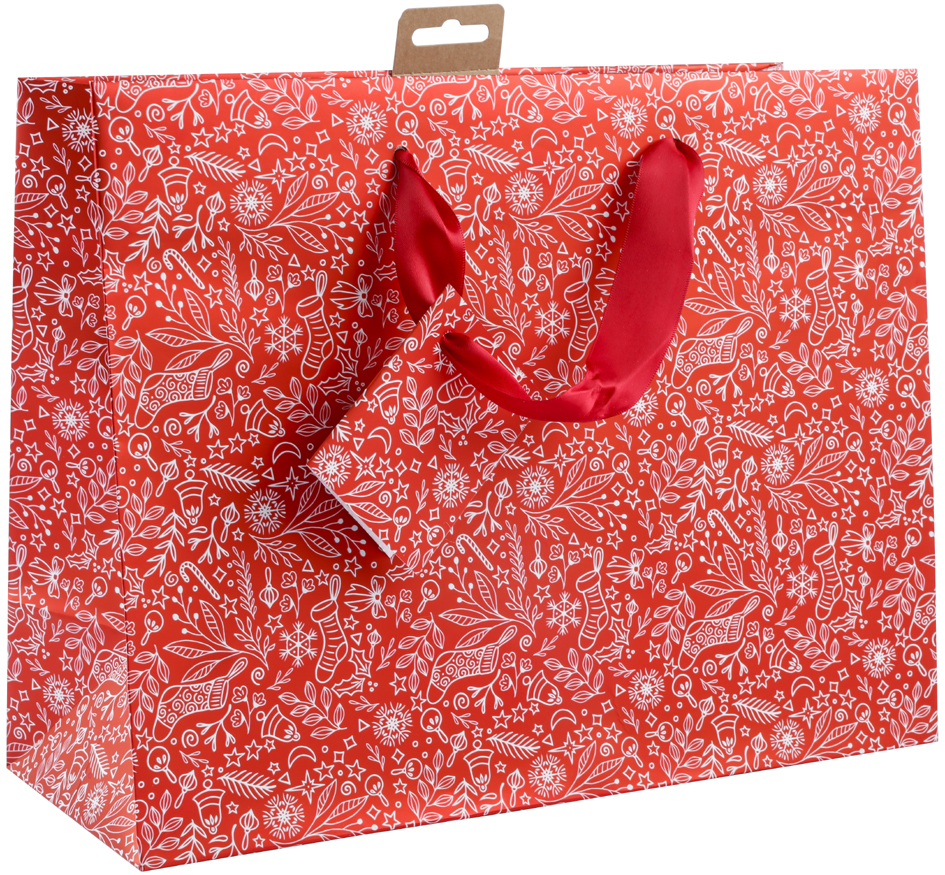 Elegant Christmas gift bag ‘Santa’ made of coated paper with red satin ribbon. Spacious size: 32×13×24.5 cm.