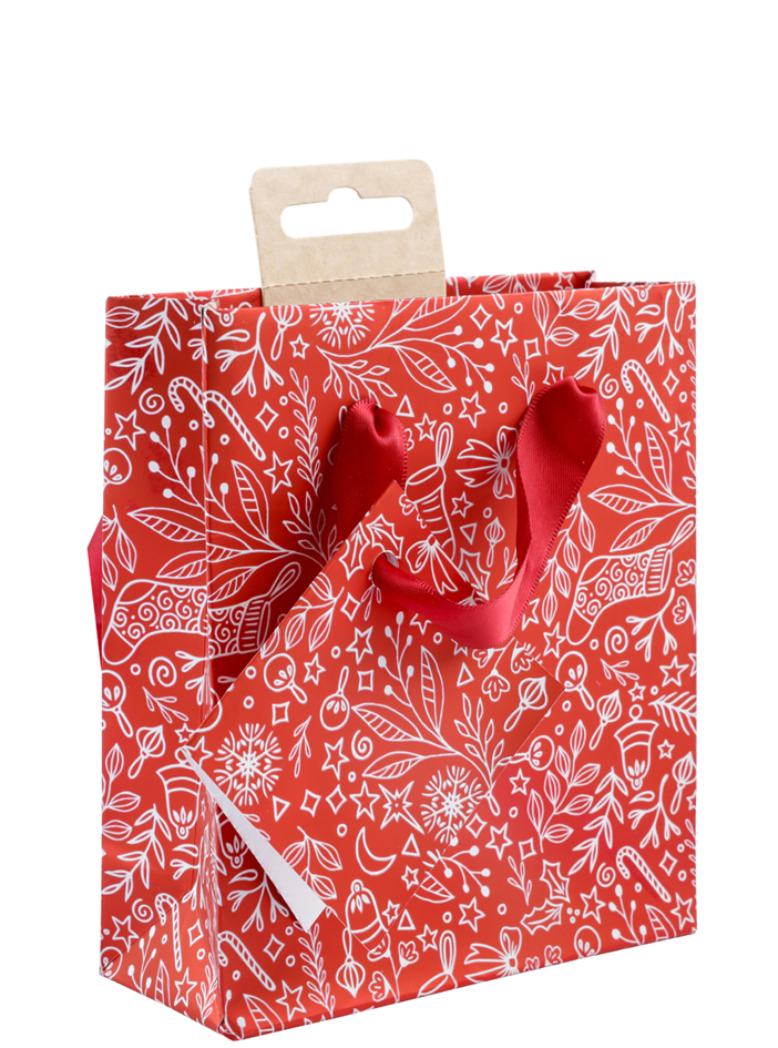 Elegant Christmas gift bag ‘Santa’ made of coated paper with red satin ribbon. Compact size, ideal for small holiday presents.