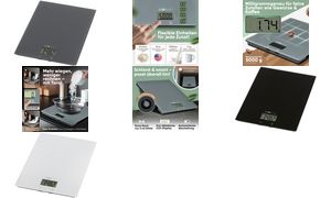 Sleek digital kitchen scale with glass surface. Precise 1g increments, multiple measurement units and tare function.