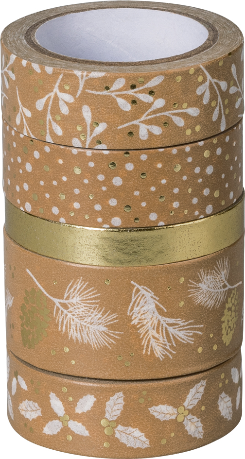 Creëer een feestelijke sfeer met dit set kraftpapier met een luxueuze hoogglanseffect en misteltakmotief. Ideaal voor het inpakken van cadeaus, decoratie op tafels of het samenstellen van wenskaarten. De vijf rollen in uiteenlopende breedtes (6, 12 en 18 mm) bieden eindeloze mogelijkheden. Combineer met andere materialen voor een persoonlijke toets. Een stijlvolle aanvulling voor de kerstperiode. EAN 4005329143281 (203584527)