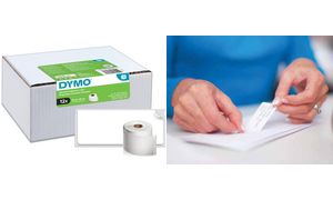 Shipping labels for DYMO LabelWriter. 12 rolls of 220 permanent adhesive labels (54 x 101 mm). Compatible with various LabelWriter models.