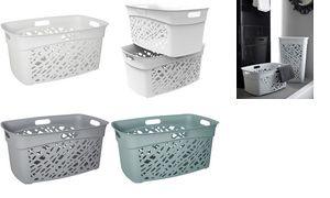 Praktische wasmand met ergonomische vorm en handgrepen aan alle zijden. Afmetingen: 59x40x28 cm, ideaal voor huishoudelijk gebruik. Productomschrijving in het engels, Productdescription in English Ergonomic laundry basket with handles on all sides, 45L capacity, eucalyptus green color.