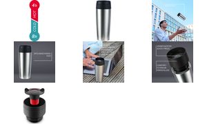 Hoogwaardige vacuüm geïsoleerde thermosbeker van roestvrijstaal. 100% lekdicht, eenvoudig te openen per knopdruk, vaatwasserbestendig. Afmetingen: 82x82x204mm. Productomschrijving in het engels, Productdescription in English High-quality vacuum insulated stainless steel travel mug, 100% leakproof, dishwasher safe, push-button opening.