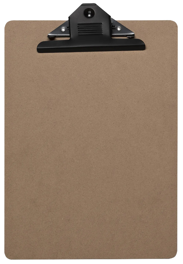 Durable A4 MDF clipboard with metal clip and hanging hole. Rounded corners for comfortable handling. Size: 230 x 325 x 3 mm.