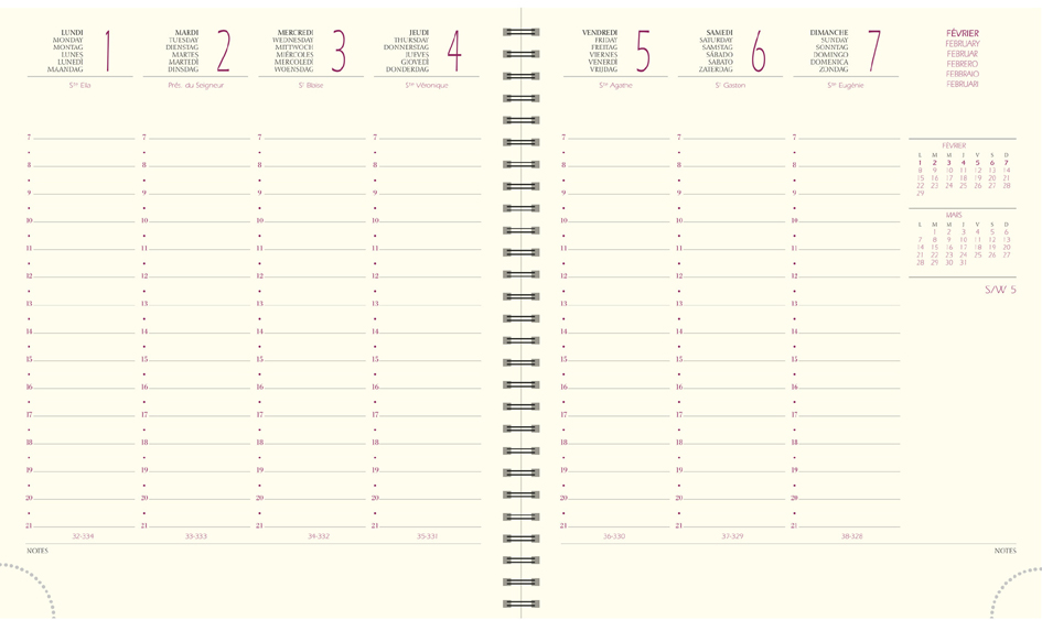 Bureauagenda Vérone 2025/2026 voor 16 maanden (sep-dec). Stijlvolle leren kaft, spiraalgebonden. In vier kleuren verkrijgbaar. Formaat 150x170mm met ivoor papier.