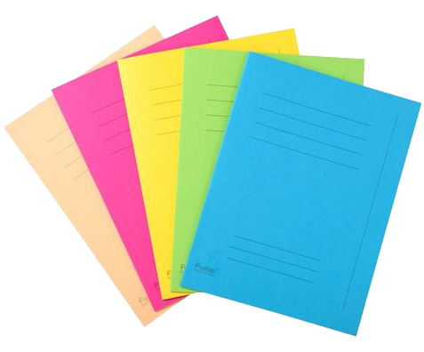 Eco-friendly A4 file folders made from recycled cardboard (220 g/m²). Pre-printed lines. Available in various colors. Pack of 50.
