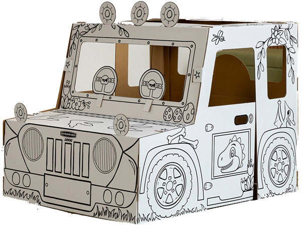 XL speelkarton van golfkarton met afgeronde kanten, snel op te bouwen zonder lijm. Met voorgedrukte dino-truck motieven, deuren en ramen die open en dicht kunnen. Recyclebaar. Afmetingen opgebouwd: 795 x 815 x 977 mm. Productomschrijving in het engels, Productdescription in English XL play cardboard made of corrugated cardboard with rounded edges, quick assembly without glue. Featuring printed dino-truck design, opening doors and windows. Recyclable. Assembled dimensions: 795 x 815 x 977 mm.