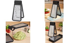 Inklapbare roestvrijstalen rasp met fijne en grove zijde. Ruimtebesparend opvouwbaar, vaatwasserbestendig. Afmetingen: 115x38x240mm. Productomschrijving in het engels, Productdescription in English Foldable stainless steel grater with fine and coarse sides, dishwasher safe, space-saving design.