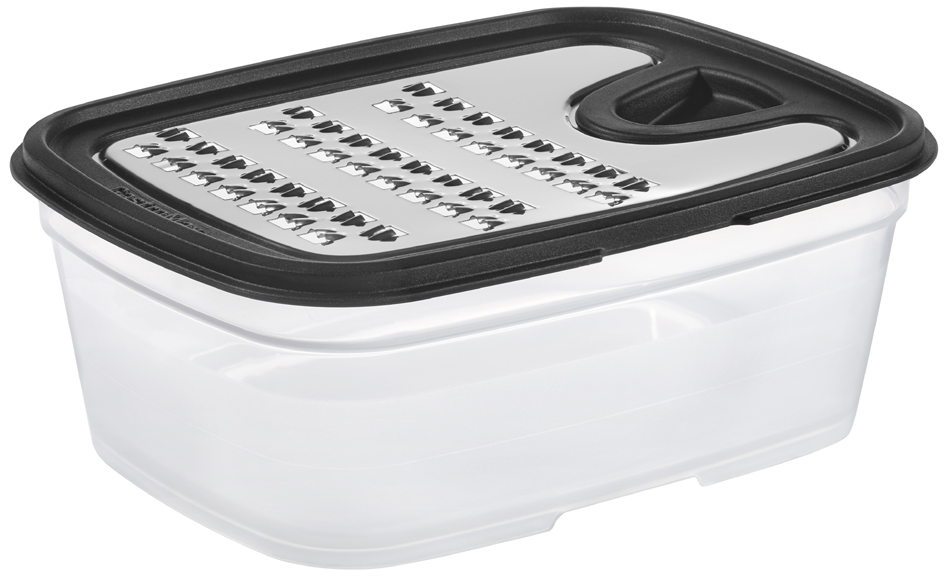 Roestvrijstalen mes rasp die in beide richtingen werkt, inclusief opvangbak voor geraspte ingrediënten, perfect voor harde kaas. Productomschrijving in het engels, Productdescription in English Stainless steel grater with collection container, bidirectional rasping, ideal for hard cheese.