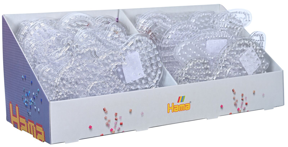 Hama Strijkkralen maxi display met 38 verschillende strijkplaten in 18 kleuren. Bevat diverse vormen waaronder dieren, voertuigen en figuren. Perfect voor creatieve projecten.