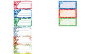 Zelfklevende etiketten voor handmatige beschrijving van boeken. Set bevat 3 vellen met elk 3 etiketten. Productomschrijving in het engels, Productdescription in English Self-adhesive book labels for manual writing, 3 sheets with 3 labels each.
