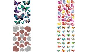 Glitterstickers uit flexibele, permanent plakbare folie. Formaat: 84 x 120 mm. Inhoud: 1 vel met 11 stickers. De zelfklevende stickers zijn gemaakt van glitterfolie en blijven duurzaam plakken. Past perfect voor diverse creatieve projecten. (15666)