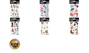 Deze zelfs klevende en watervaste sticker is gemakkelijk te verwijderen met bodylotion. Handig voor knutselaars, doe-het-zelvers en liefhebbers van bijzondere haarstijlen! De verpakking bevat één volledig vel. (15179)