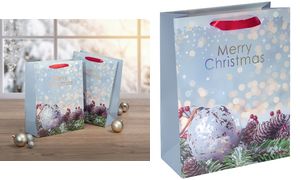 Stijlvolle cadeauzak van kraftpapier, 210 g/m2, met stevige kartonnen bodem. Voorzien van fraai afgestemde zijden handgrepen, matte lak en foliebedrukking op de voorzijde. Afmetingen: 26 x 12 x 33 cm. Met opdruk ‘Merry Christmas’. Ideaal voor een feestelijk cadeau. (GT114)