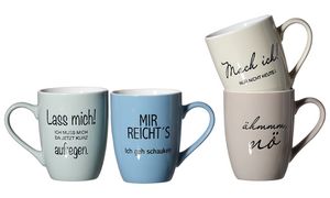 Prachtige keramische koffiekopjes met een unieke kegelvorm. Vaatwasserbestendig en leverbaar in vier kleuren/motieven. Ideale hoogte van 10 cm. Verkocht per set van vier stuks. Een stijlvolle aanvulling op uw serviescollectie. (419986)