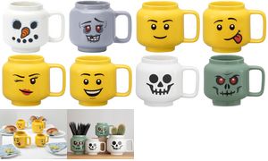 Keramische koffiemok in vorm van LEGO minifiguur hoofd met sneeuwpop motief. Vaatwasserbestendig. Afmetingen: 111 x 62,5 x 84 mm. Productomschrijving in het engels, Productdescription in English Ceramic coffee mug shaped like LEGO minifigure head with snowman design, dishwasher safe.
