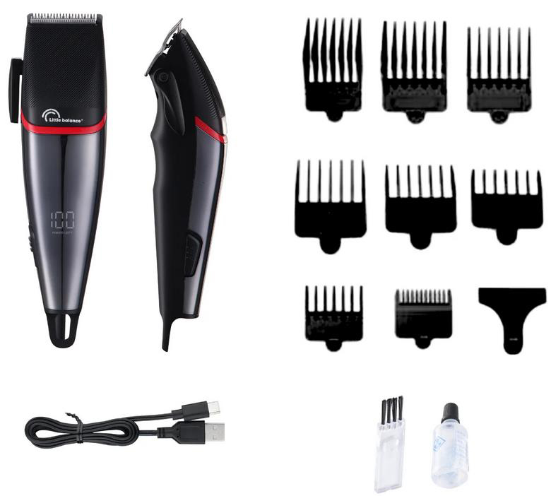 Draadloze haartondeuse met lithium-ion accu, 150 min. gebruikstijd en snellaadfunctie (120 min.). Roestvrijstalen mesjes, instelwiel met 4 standen (0,9-1,2 mm). Inclusief USB-C laadkabel, beschermkap, 8 opzetkammen, reinigingsborsteltje en olie. Productomschrijving in het engels, Productdescription in English Cordless hair clipper with lithium-ion battery, 150 min. runtime and quick charge function. Stainless steel blades, adjustable wheel with 4 positions. Includes USB-C cable, 8 guide combs and accessories.
