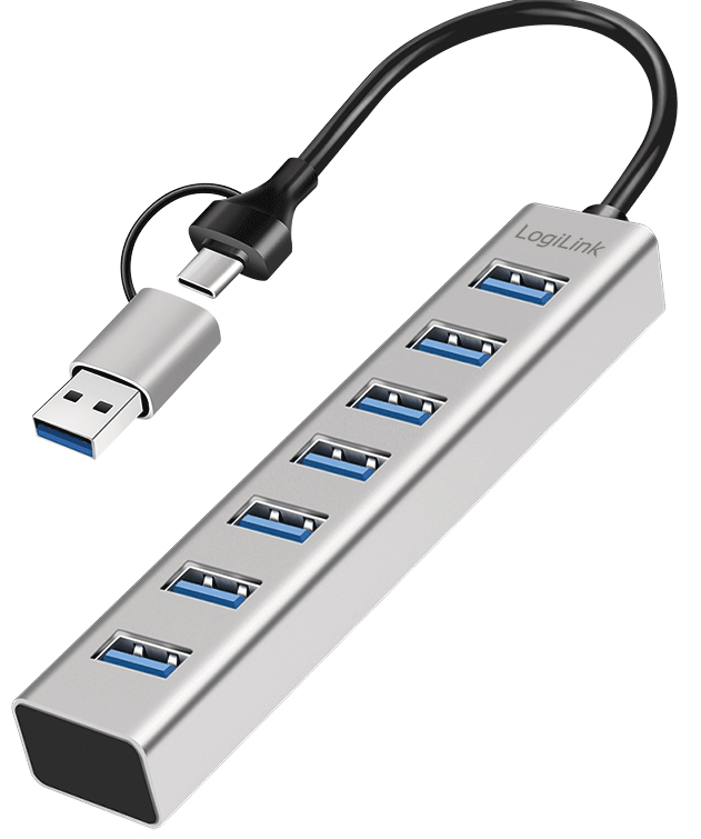 LogiLink USB 3.0 Hub 7-poorts met USB-A aansluitingen zilver