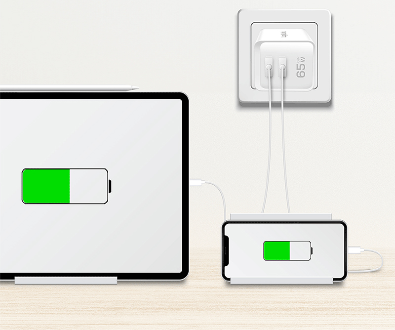 USB-C wandlader met Power Delivery (PD) en GaN-technologie. 2x USB-C PD-aansluiting, totaal 65W vermogen. Ingebouwde apparaatbeveiliging. Ingang: 100-240V AC, 50/60Hz, 1,5A. Inclusief eurostekker. Productomschrijving in het engels, Productdescription in English USB-C wall charger with Power Delivery (PD) and GaN technology. 2x USB-C PD ports, 65W total output. Built-in device protection. Input: 100-240V AC. Euro plug included.