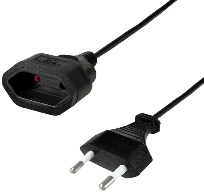 Kunststof verlengkabel met Euro stekker en koppeling, 2×0,75mm², 0,2 meter lengte, geschikt voor huishoudelijke apparaten. Productomschrijving in het engels, Productdescription in English Plastic extension cable with Euro plug and coupling, 0.2m length, suitable for household appliances.