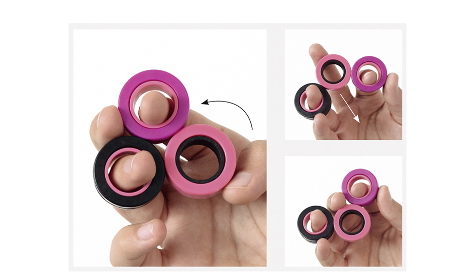 Deze handige magneetspeeltjes combineren leren en plezier! De set bevat 3 magnetische ringen in de kleuren roze en zwart, elk met 6 magneetjes. Draai, draai en ontdek de oneindige vormen. Ideaal voor creatieve kinderen om hun fijne motoriek te ontwikkelen. Gebruik ze tijdens reizen, op school of thuis voor eindeloos knutselplezier. Inclusief handleiding. Product nummer: (33302).