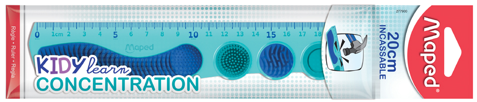 Maped Kidy leerlineaal voor concentratie (200mm). Gemaakt van stootvast PET met bewegende elementen voor zelfregulering. Ideaal voor kinderen met overactieve energie.