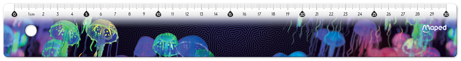 Kunststof liniaal met schaalverdeling en kwallendesign. Inclusief beschermhoes voor veilig transport en opslag. Productomschrijving in het engels, Productdescription in English Plastic ruler with scale markings and jellyfish design, includes protective case.