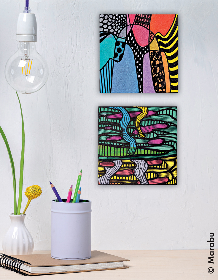Complete rakelkunst set met 6 acrylverven van 25ml, rakel, 10 acrylpapieren 135x135mm, marker en handleiding. Perfect voor creatieve rakelprojecten. Productomschrijving in het engels, Productdescription in English Complete squeegee art set with 6 acrylic paints, squeegee tool, papers, marker and instructions.