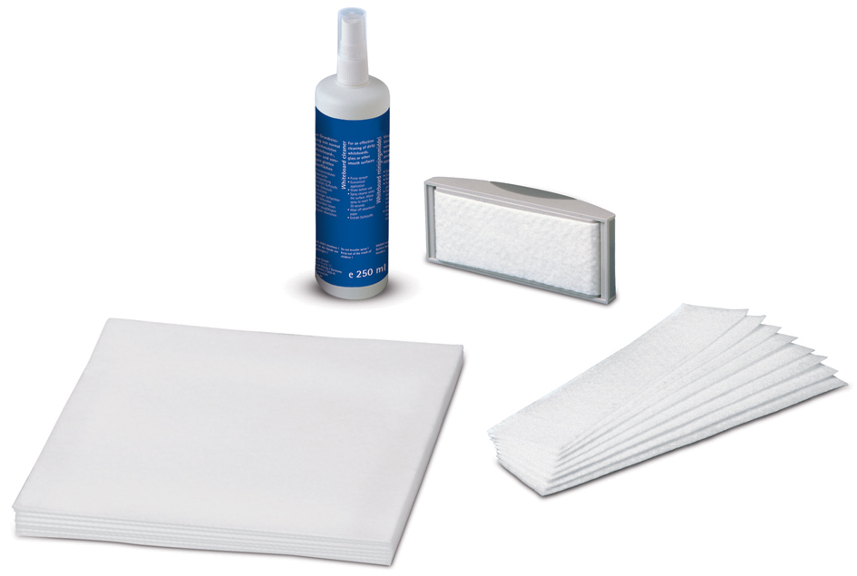 Complete set voor whiteboard onderhoud. Bevat reinigingsspray 250ml, wisser, 10 wisserdoeken en 10 schoonmaakdoeken. Productomschrijving in het engels, Productdescription in English Complete whiteboard cleaning kit with spray, eraser and cleaning cloths for optimal maintenance.